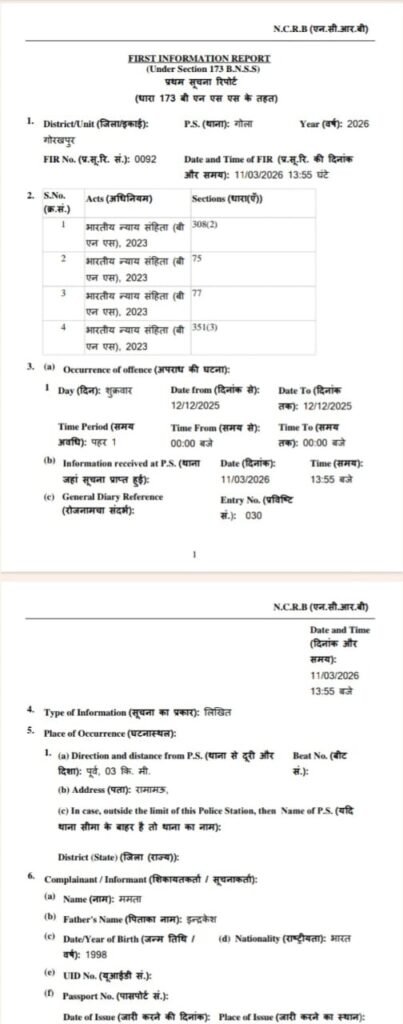 बृजनाथ तिवारी की रिपोर्ट गोलाबाजार, गोरखपुर: 13 March 2026 जनपद के दक्षिणांचल स्थित गोला थाना क्षेत्र के ग्राम रामामऊ में मानवता और मर्यादा को शर्मसार करने वाला एक गंभीर मामला
